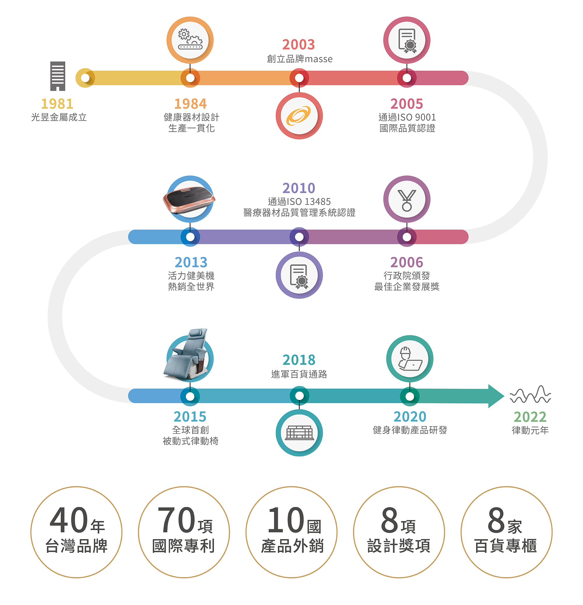1981 年成立,43+生產按摩放鬆產品,療癒無數人身心