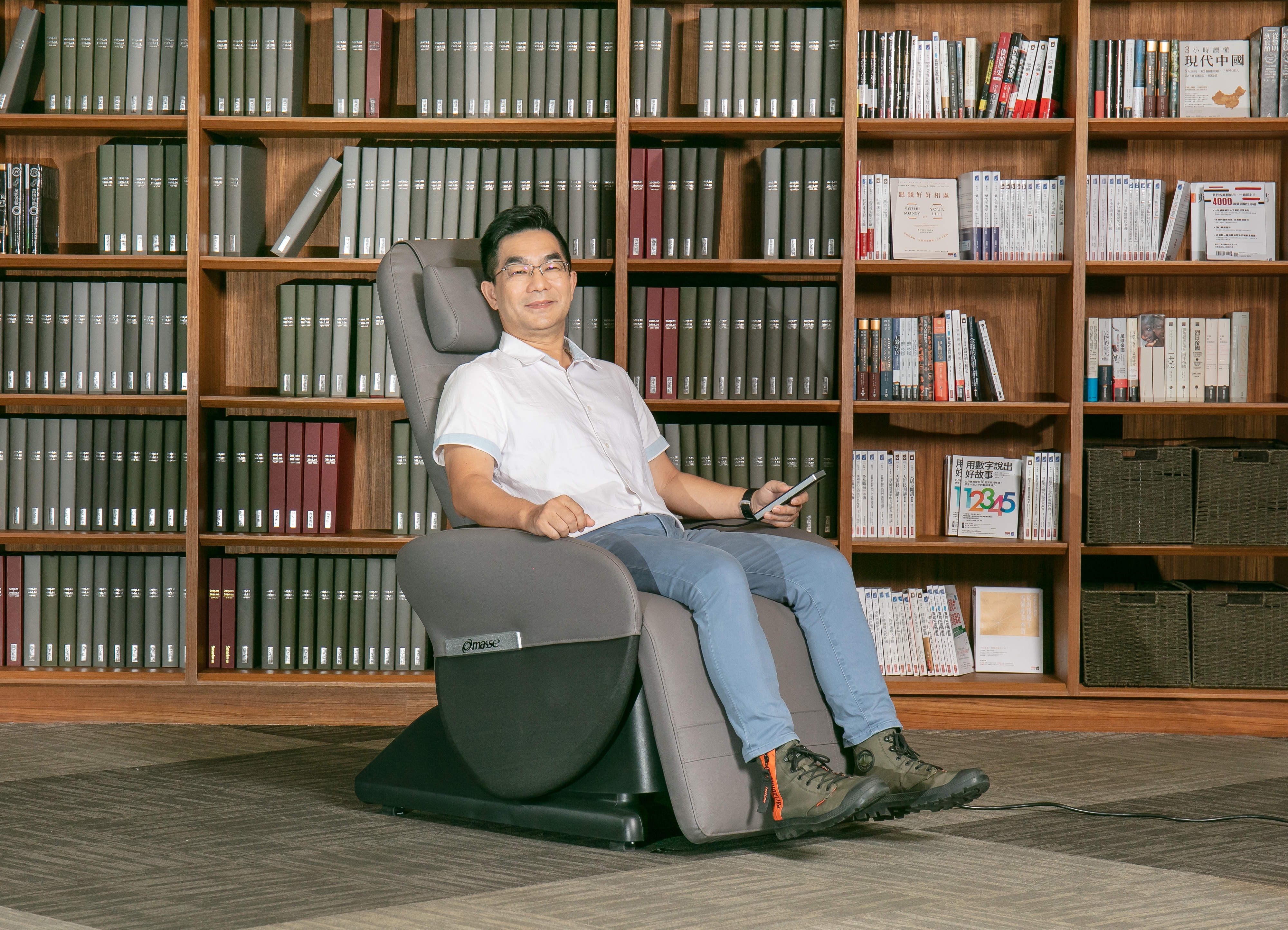 工作忙碌的賴志達,原本就很會利用時間,體驗masse優氧循環律動椅時,他也發揮時間管理大師的精神,非常有效率的分配使用律動椅的各種功能及時間。「因為體質的關係,我從20多歲開始就有痛風的問題,有時尿酸會過高,尤其是季節轉換時症狀最明顯;因此,早晨起床後我會先坐十多分鐘,藉此提升身體的代謝力;中午吃飽休息後,我也會坐律動椅十多分鐘,目的是促進腸胃蠕動,讓排便更順暢;晚上睡覺前,再坐十多分鐘來養生,並且連結手機藍芽功能播放白噪音,讓自己的精神及情緒得到放鬆,藉此改善睡眠品質。」他更進一步提到,masse優氧循環律動椅就像一張舒適的電動沙發一樣,就算不使用律動功能,坐起來也是非常舒服,想養生時,又有各種機能可以選擇,輕輕鬆鬆就能達到保健的作用。
