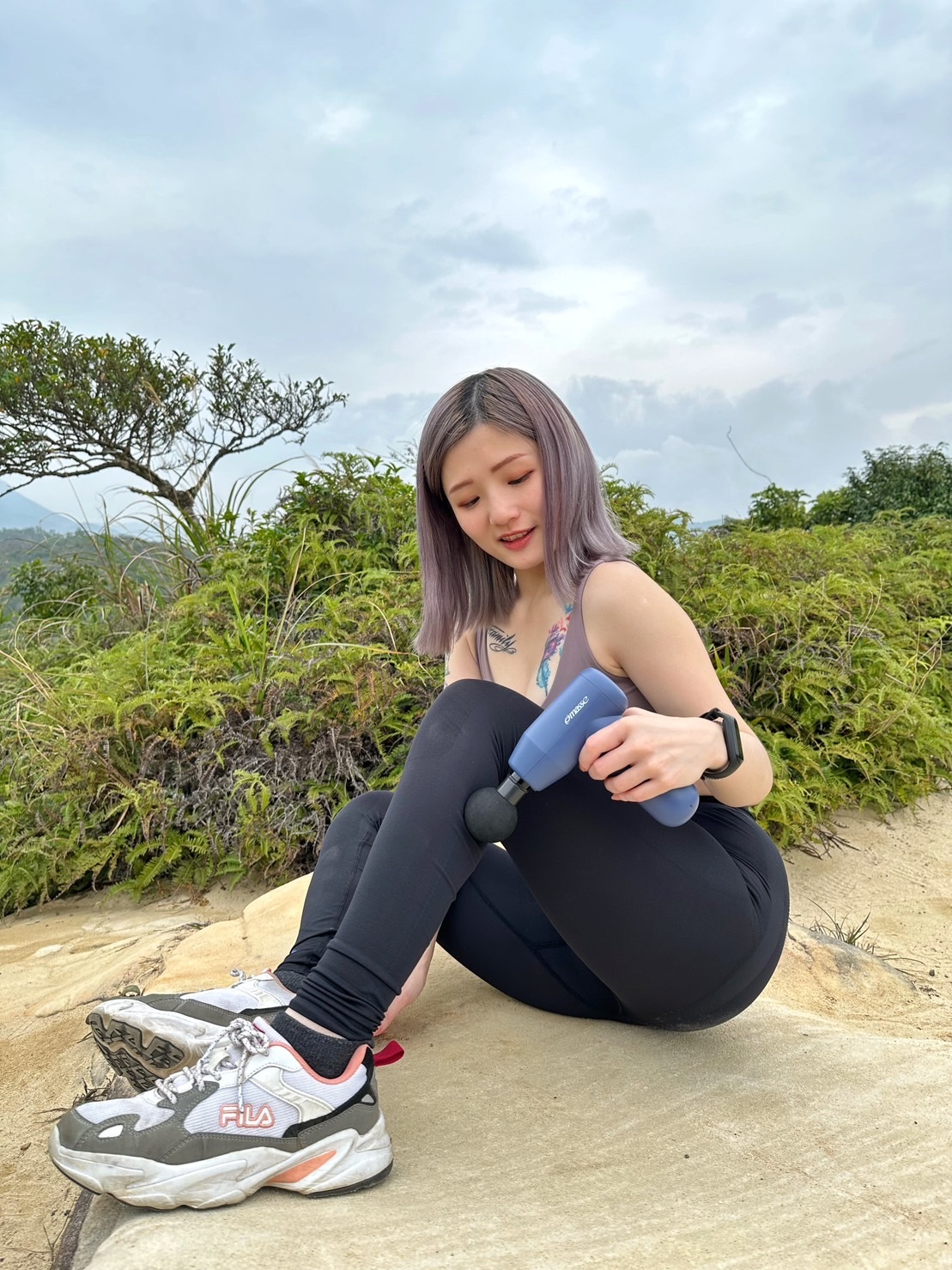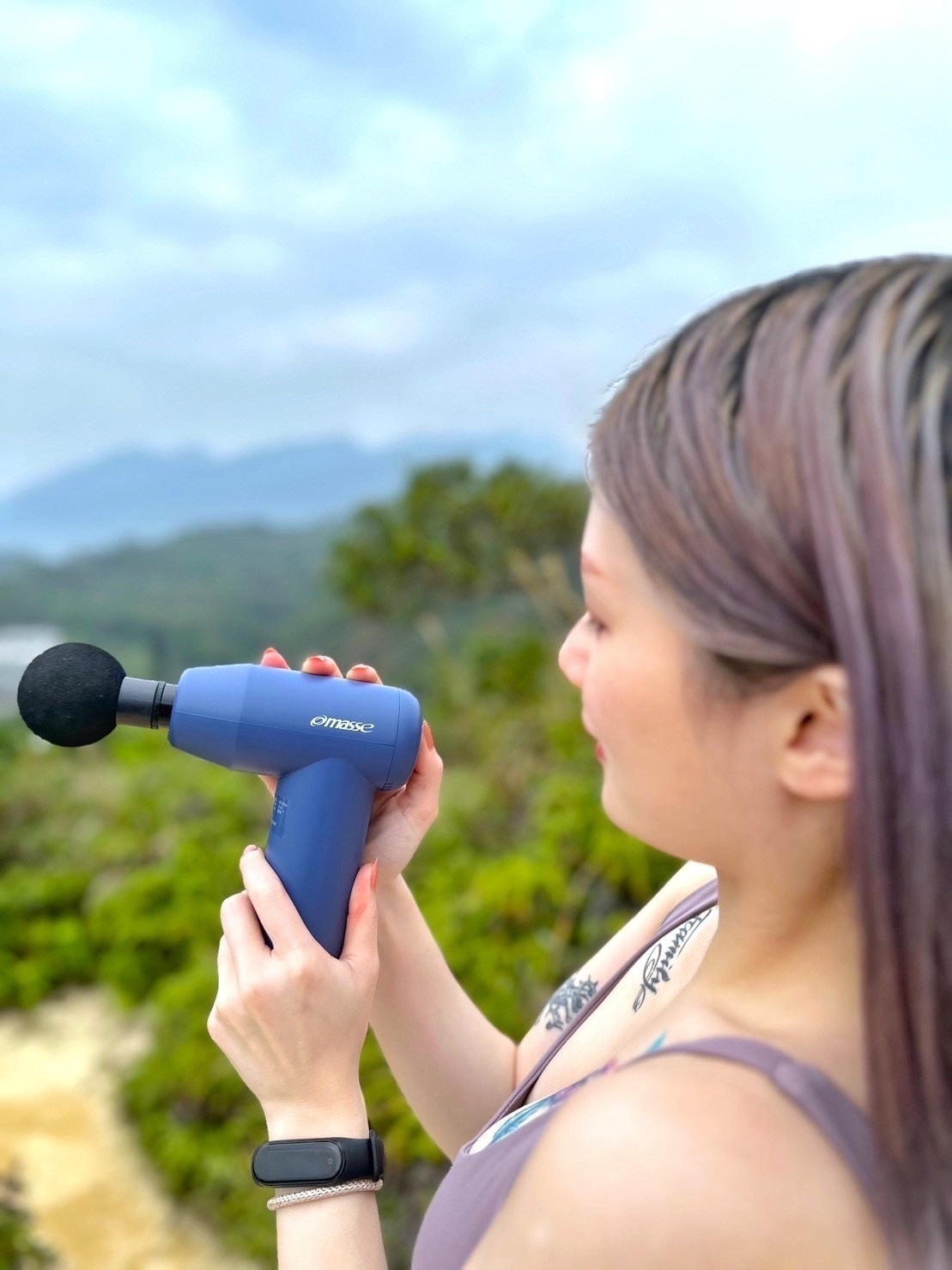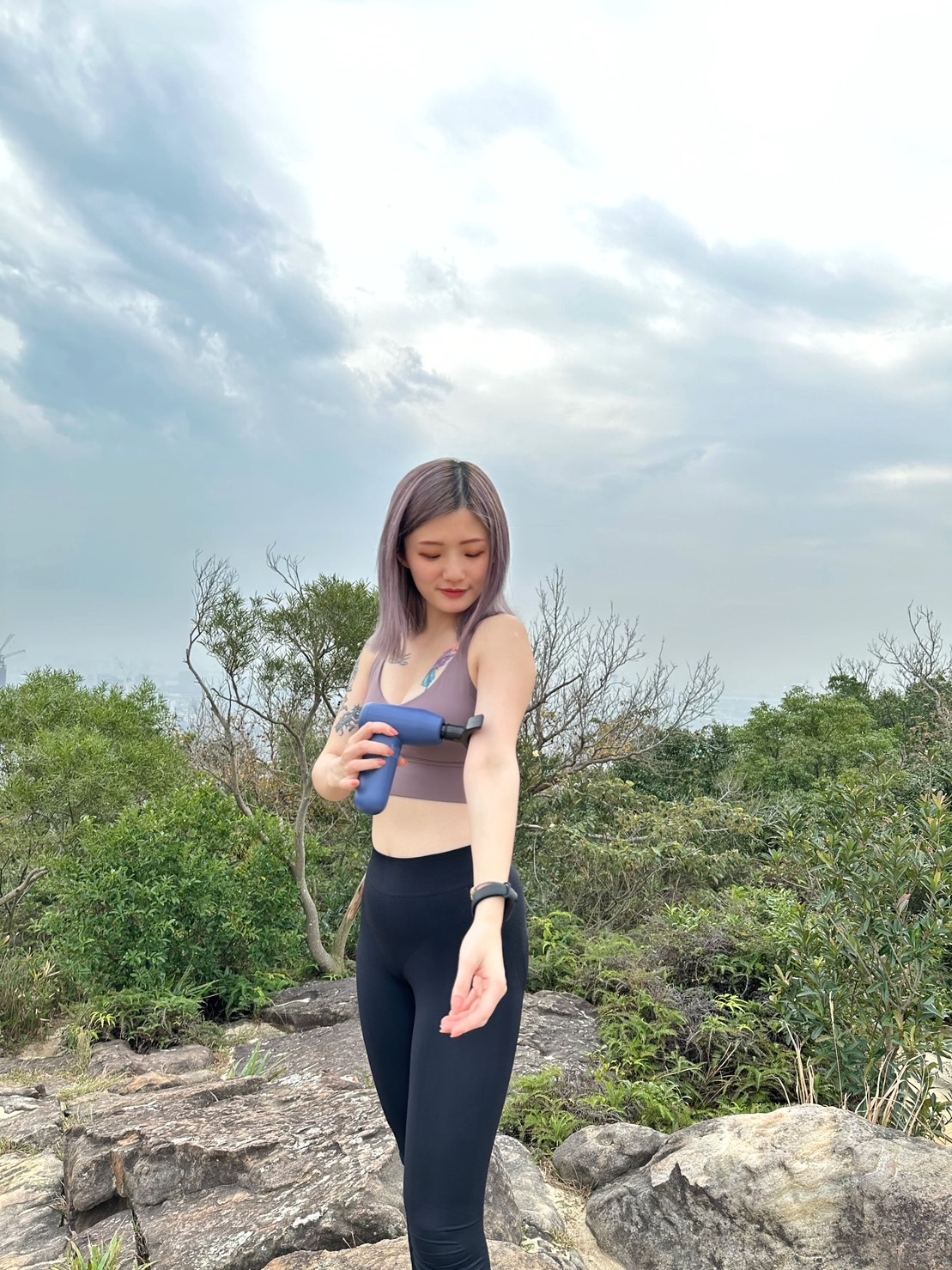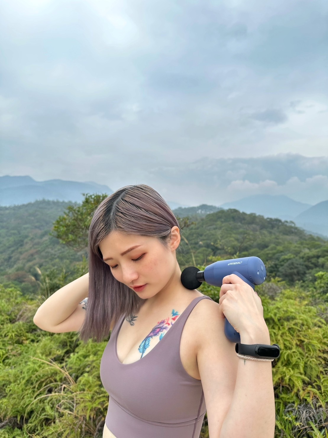 近期登山也會帶上按摩槍隨時舒緩緊繃的肌肉,有五種功能頭和智能強度可以切換💗