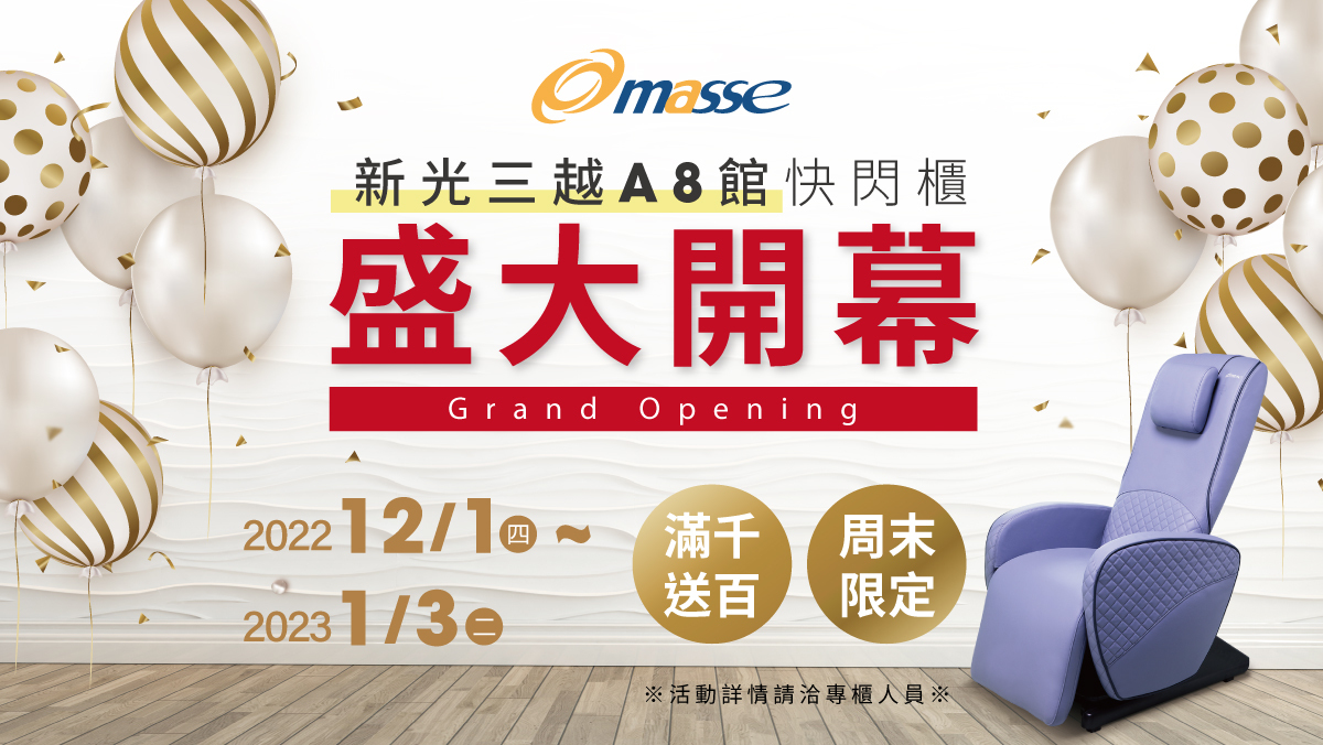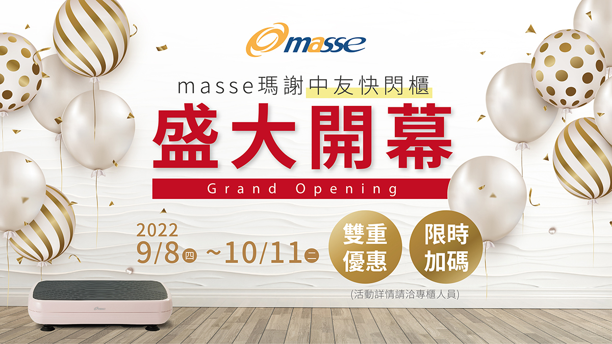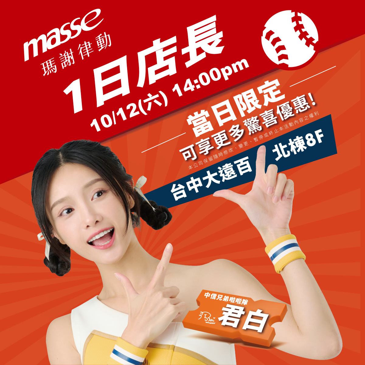 🕒即日起-10/12 於台中大遠百 北棟8樓(masse瑪謝律動櫃位)