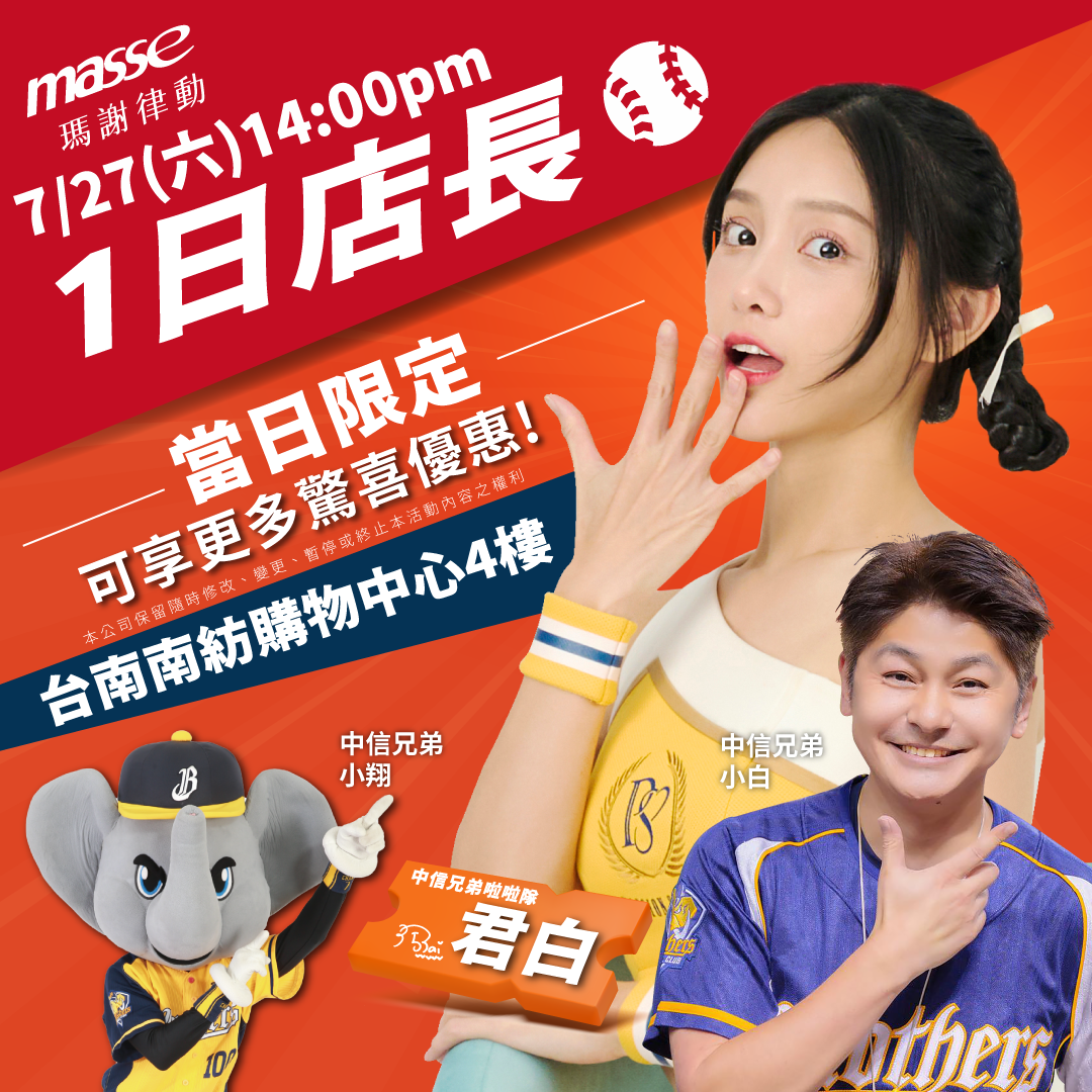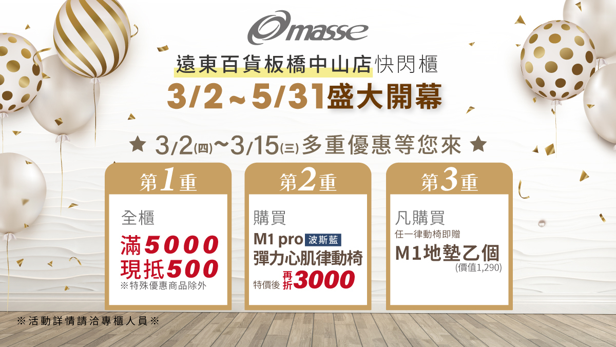 7/24-7/26 於南紡購物中心 4樓masse瑪謝律動櫃位: